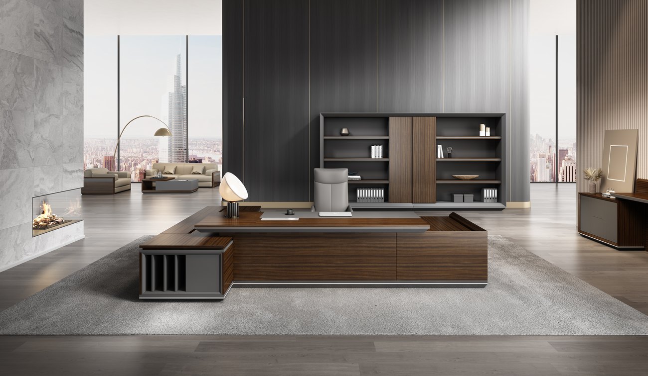 印象米兰系列定位为企业高层客户, 以深色大尺寸油漆产品为主, 班台从 2 米 -3.88 米共 10 多个规格 4 款产品供客户选择, 配套产品也相对比较全, 这个系列设计元素奉行的是一种哲学思想, 价值观以及生活方式 " 利用简单的东西做出不一样的效果, 在品位和思想上显得更加的小资和优雅, 极简主义的前身其实是极少主义, 也就是用极少的东西让设计的物品显得更加的整洁, 奉行去除华丽的矫饰, 摒弃繁琐的设计, 烘托主题, 新富豪推出的印象米兰系列正是以宁静而返璞的归属感 在这个极简现代的空间里体现。